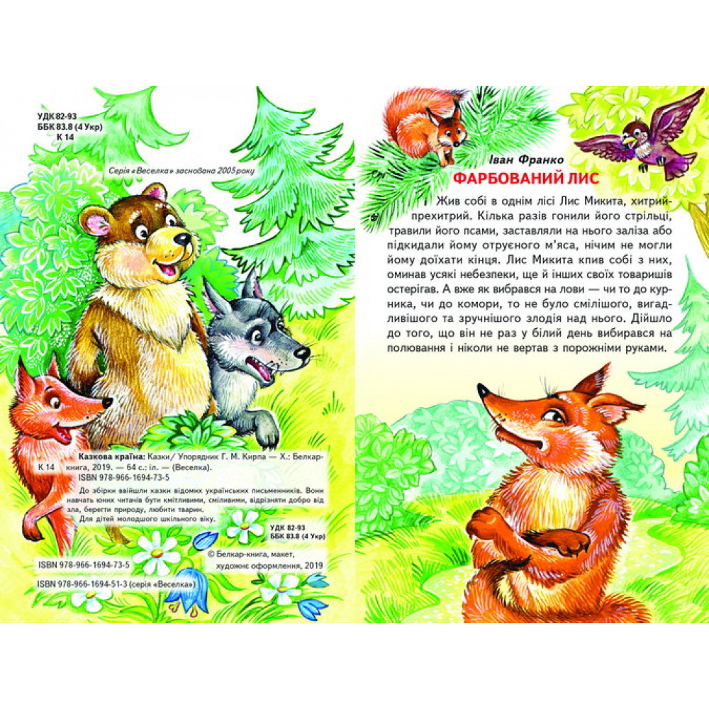 До збірки ввійшли казки відомих українських письменників. Вони навчать юних читачів бути кмітливими, сміливими, відрізняти добро від зла, берегти природу, любити тварин.