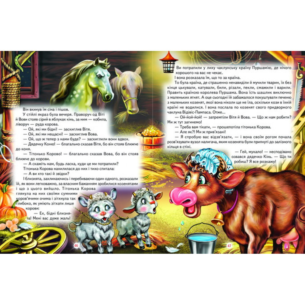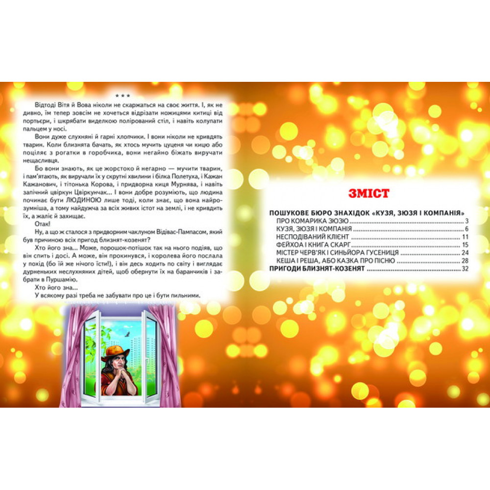 Читаючи цю книжку, малята поринуть у захоплюючий світ пригод, де добро і справжня дружба завжди перемагають зло. Вони дізнаються як звичайнісінькі комахи Кузя й Зюзя стали детективами і що з цього вийшло, а також про дивовижні пригоди близнюків Вови та Віті, які перетворилися на козенят.
