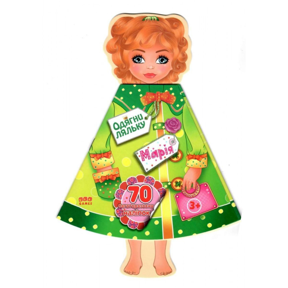- цілих 3 розвороти багаторазових наліпок із зображеннями одягу в різному стилі 70 наліпок.