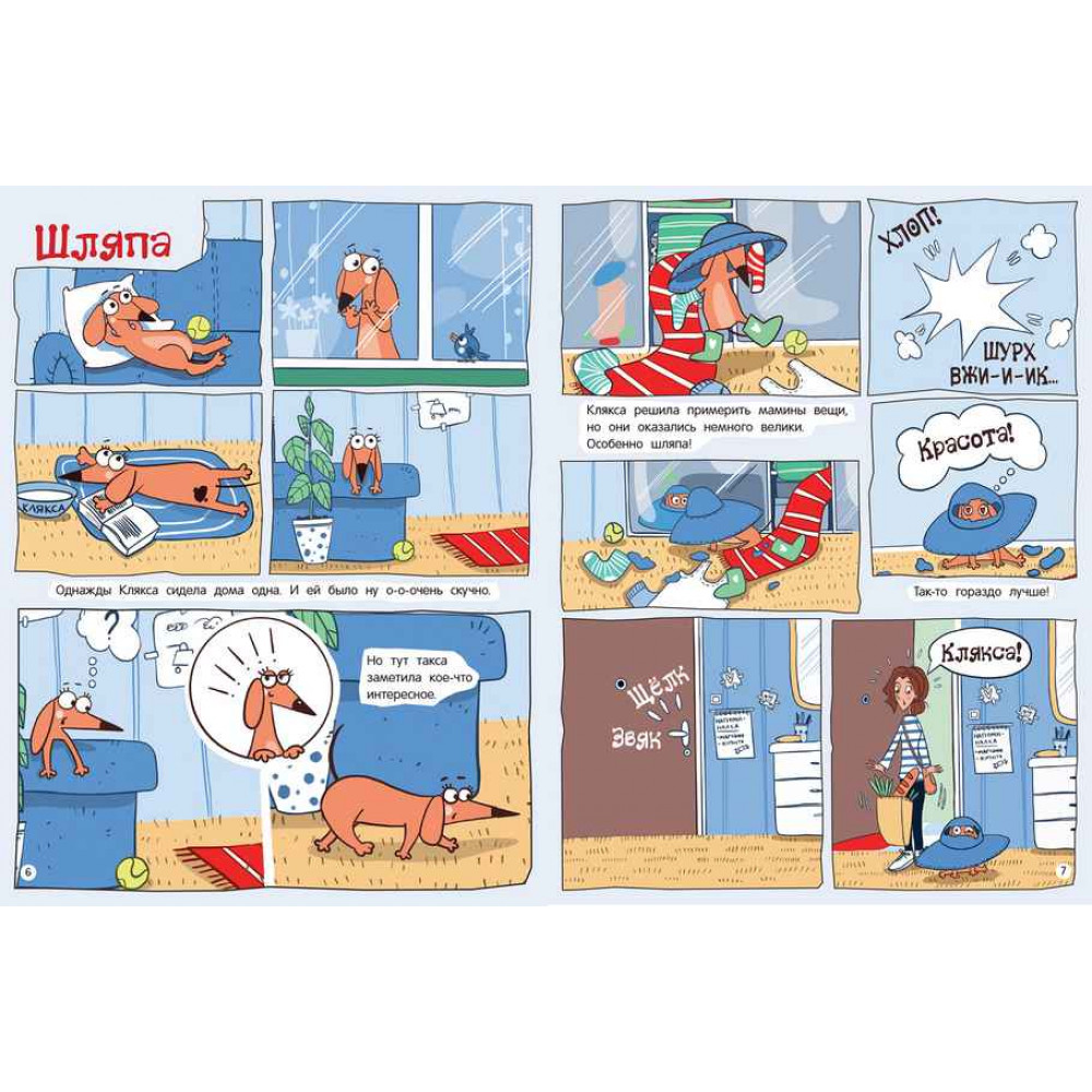 С таксой Кляксой скучать не приходится.У нее что ни день- так приключение!Хотите узнать, где лучше прятать вкусные котлеты?Как выглядеть модно, когда очень хочется?Что делать, когда скучно? Это четвероногая озорница знает ответы на все "что","где" и "как".