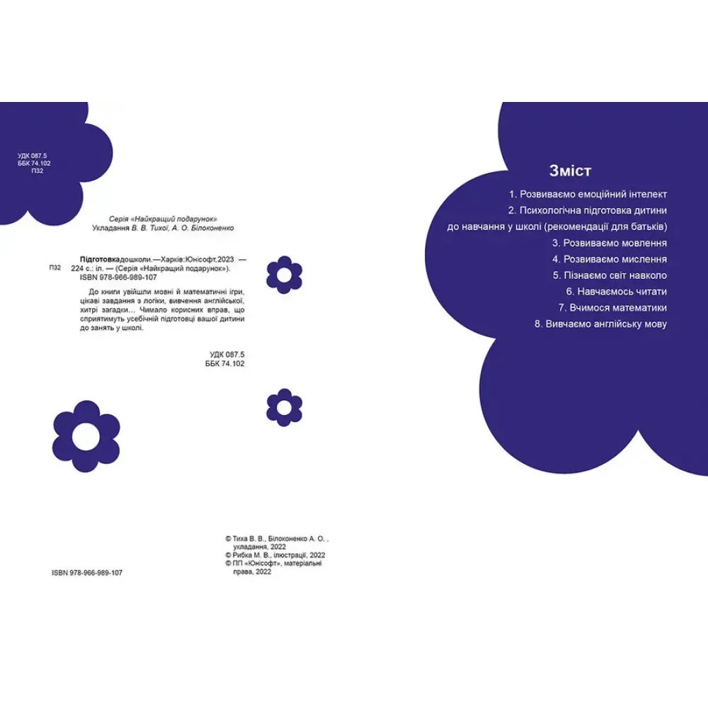 До книги увійшли мовні й математичні ігри, цікаві завдання з логіки, вивчення англійської, хитрі загадки… Чимало корисних вправ, що сприятимуть усебічній підготовці вашої дитини до занять у школі.