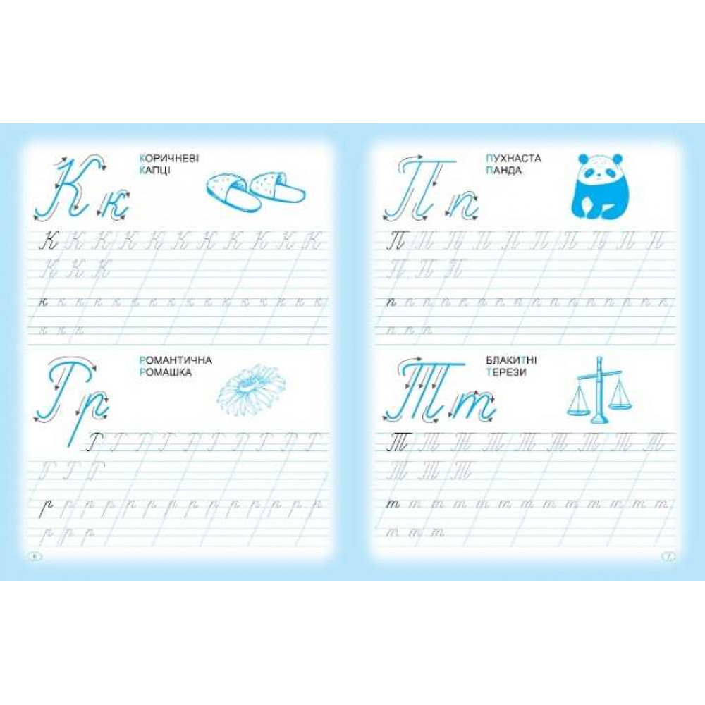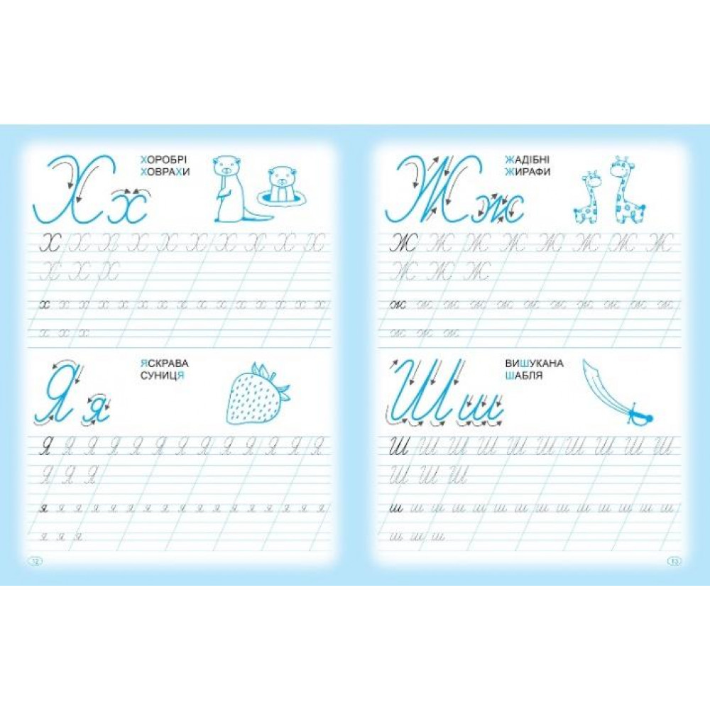 Прописи допоможуть дитині навчитися впевнено тримати олівець і писати літери. Кожна буква проілюстрована словом та яскравим малюнком. Регулярно тренуючись, дитина розвиватиме пам'ять, увагу й уяву, дрібну моторику, а також формуватиме навички чіткого і охайного почерку. Прописи упорядковані згідно з методичними рекомендаціями щодо підготовки руки до письма.