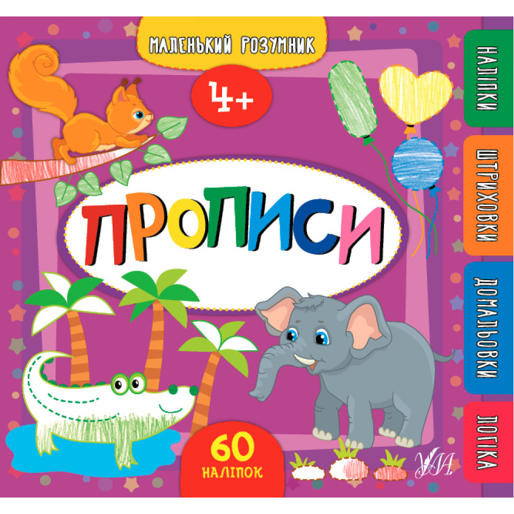 Ця книга познайомить вашого малюка з прописами. Видання містить вправи, які допоможуть розвинути графічні навички, творче мислення, а також пробудити інтерес до письма. Займаючись із цими прописами, малюк навчиться штрихувати, малювати прямі, хвилясті та ламані лінії, акуратно домальовувати та розфарбовувати картинки, а також розв’язувати прості ілюстровані приклади та логічні завдання. Видання призначене для спільної роботи дорослих з дітьми від чотирьох років.